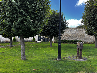 Likely of medieval origin, La Villeneuve-Saint-Martin was an independent village until 1834. It is organised around a main axis, today’s Rue François Vaudin, which was once a section of National Route 14, itself following the route of the former royal road from Paris to Rouen. This major thoroughfare was probably key to the village’s development, with most buildings located along the roadside. Near one of the village entrances, a 19th-century wayside cross made of stone marks the junction with the Rue Maurice Ravel. A nearby coachman’s plate also bears witness to earlier 19th-century road signage.