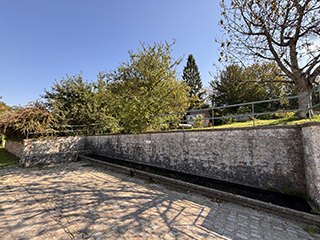 This former communal trough consists of a raised basin set back from the street along a paved area. Its elongated shape is somewhat unusual. The trough was erected in 1904, as indicated by the date on the wall. It allowed animals to drink more easily than from ponds and came with, at one end, a footbath, or “lave-sabot,” for washing the animals’ hooves at the end of the day before returning to the farm. In Chérence, livestock farming was less prominent than cereal crops. Farms typically kept a few cows and horses in addition to poultry. Sheep farming declined sharply in the commune from the early 20th century, with the last flock disappearing in 1993.